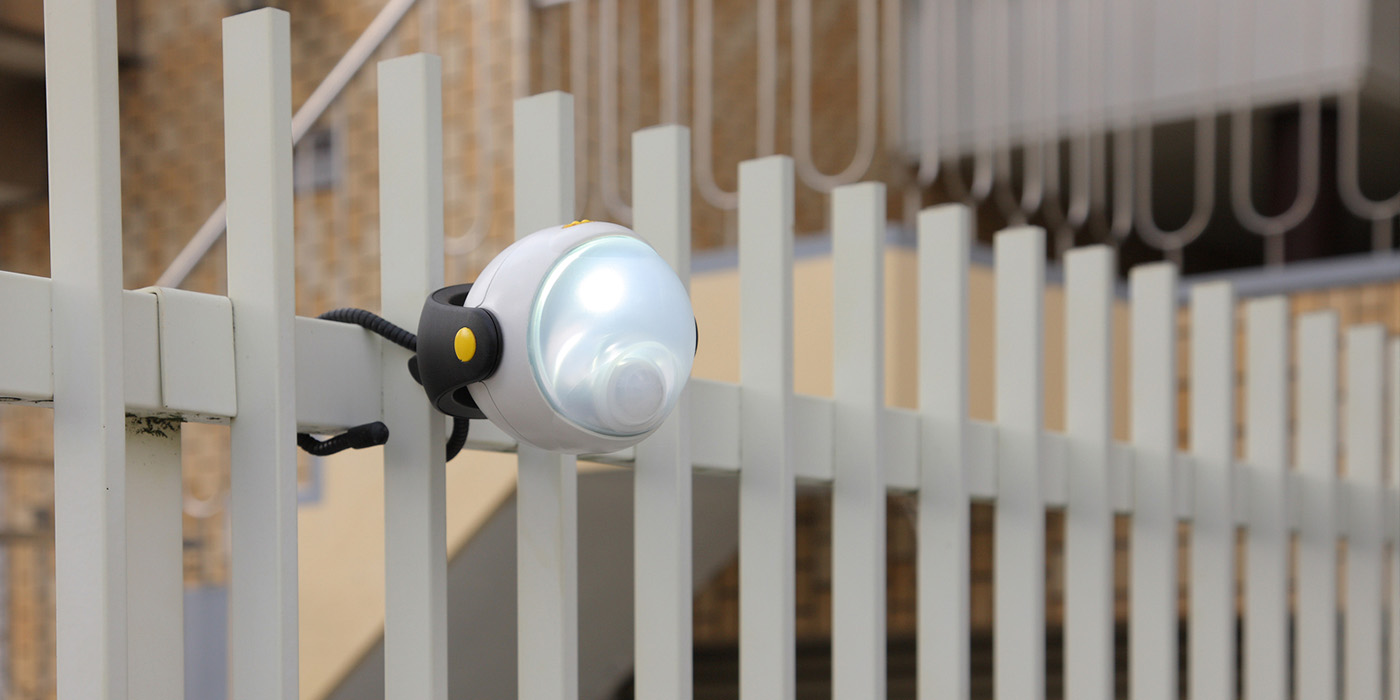 防犯用センサーライトは侵入者を感知し、強い光で威嚇、撃退します。