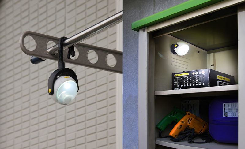 自由に曲がる三脚でどこでも取付けできます。 三脚を外せば強力マグネットで物置やロッカーに。 今まで取り付けにくかったあらゆる場所で使える便利なセンサーライトです。 防雨タイプで屋外でも使えます。