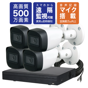 500万画素C5B-01防犯カメラ4台+2TBレコーダー+標準工事セット