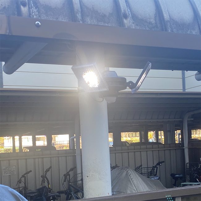 防衛省様の官舎へセンサーライトの導入工事を行いました。S-240Lは電源の確保の必要がなく、自由度の高い設置が可能なソーラー式センサーライトです。高輝度LEDを2灯備え、全光束1200ルーメンを実現。威嚇効果の高いフラッシュ発光モードと組み合わせることで高い防犯効果を発揮します。
